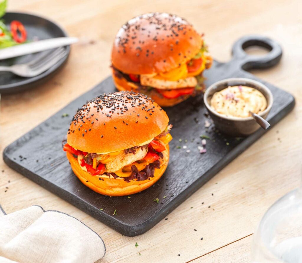 Le Brioch’Burger Paprika Sésame noir va vous faire saliver ! Ce pain burger brioché est une fusion unique entre la saveur épicée du paprika et la texture croquante et délicieuse du sésame noir. Le pain moelleux, sa texture douce et son goût légèrement épicée, sont la combinaison parfaite pour vous offrir une expérience gustative inoubliable !